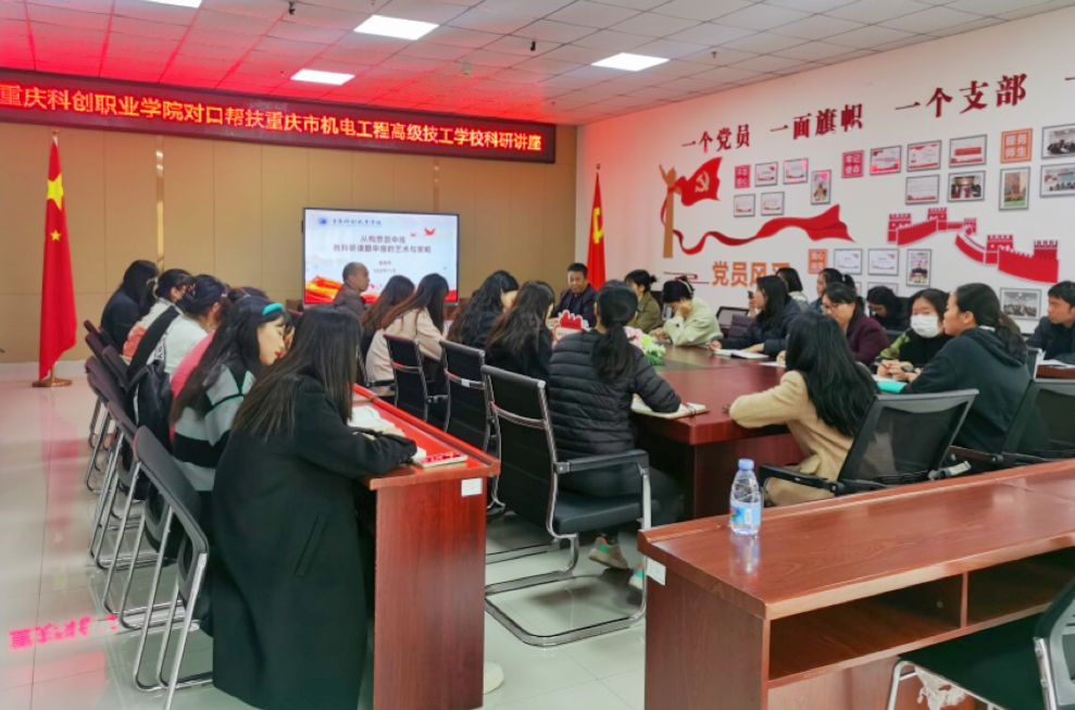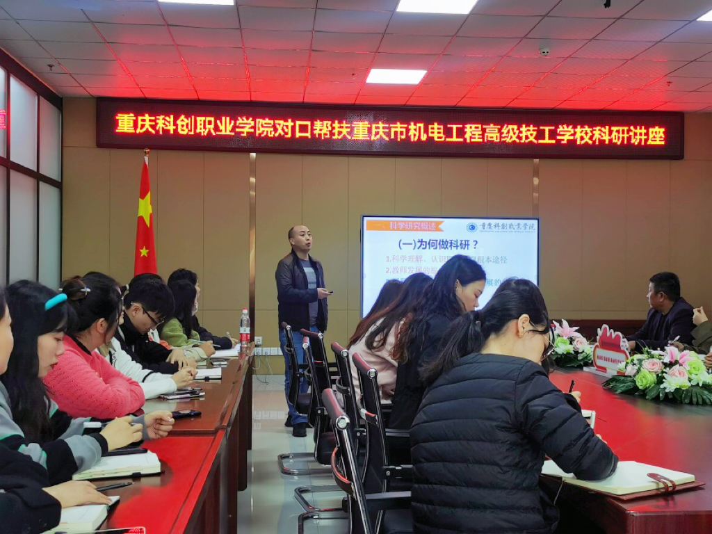 為提高我校對口幫扶學?!貞c市機電工程高級技工學校教師的教科研能力,促進該校進一步提升教科研水平,12月1日,我??蒲刑幐碧庨L袁昌明教授應邀到重慶市機電工程高級技工學校,為全校教師作《從構想到申報——教科研課題申報的藝術與策略》為題的教科研講座。