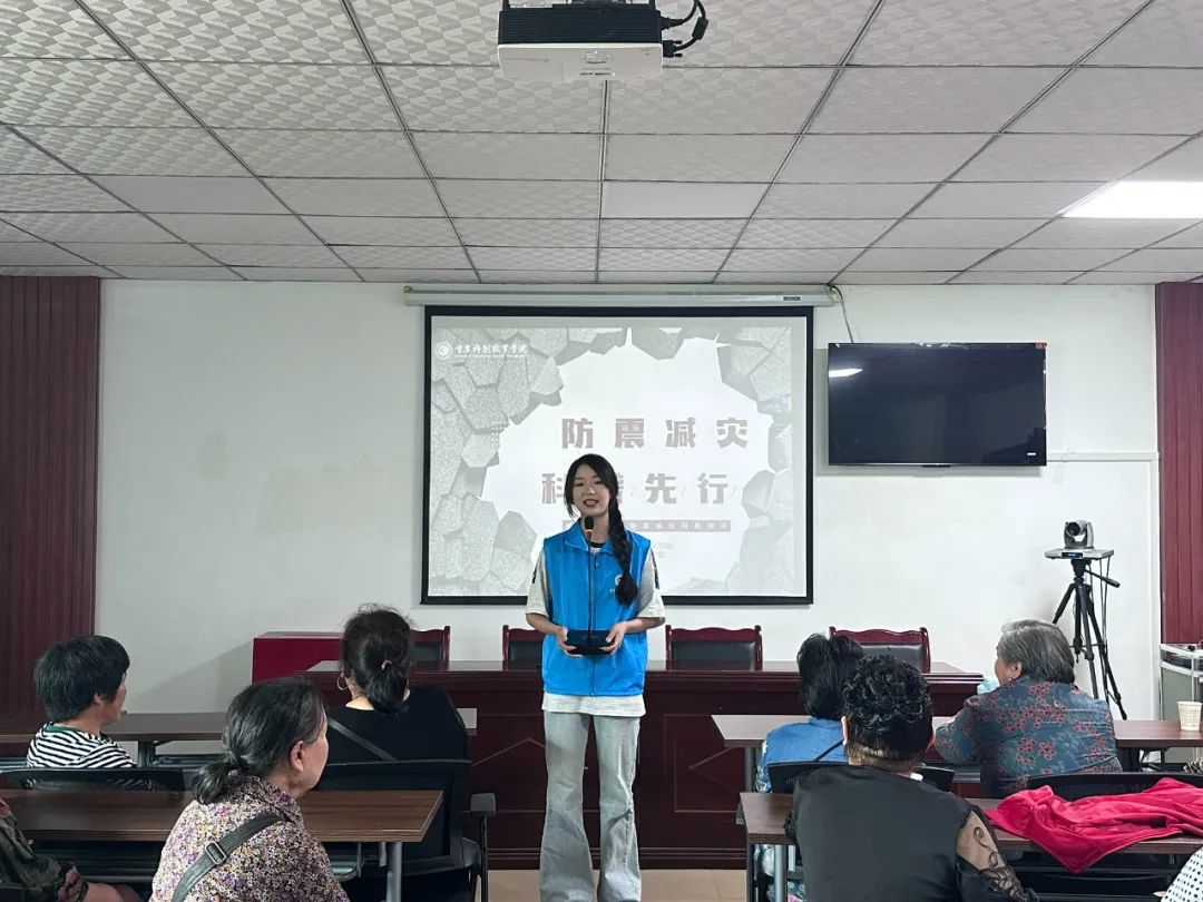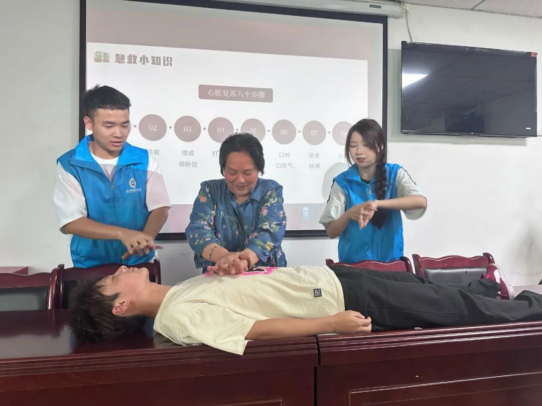 宣講會(huì)上,李韻同學(xué)圍繞地震、防汛抗旱、森林防火、消防安全、地質(zhì)災(zāi)害等內(nèi)容對(duì)社區(qū)居民進(jìn)行科普宣講,向廣大居民宣傳各類防災(zāi)減災(zāi)、自救互救、自我防范等應(yīng)急救援知識(shí)和突發(fā)事件監(jiān)測(cè)預(yù)警、應(yīng)對(duì)處置。最后,同學(xué)們和社區(qū)居民們一起學(xué)習(xí)心肺復(fù)蘇緊急救治方法,現(xiàn)場(chǎng)互動(dòng)熱烈,氛圍滿滿。