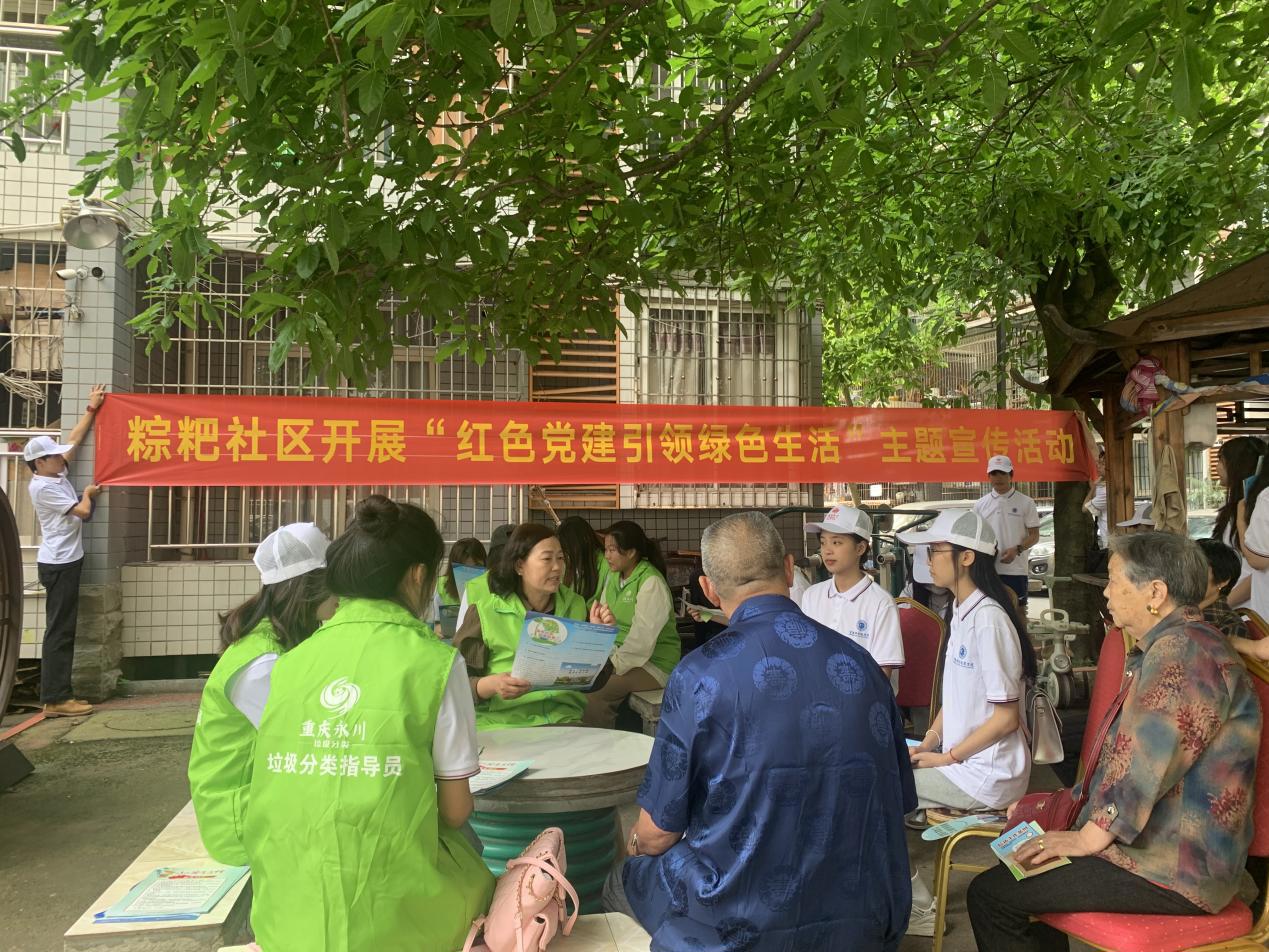 活動開始,粽粑社區(qū)羅主任帶領(lǐng)大家一起學(xué)習(xí)綠色生活、垃圾分類等生態(tài)環(huán)保知識,隨后志愿者們通過懸掛橫幅、發(fā)放環(huán)保宣傳單、環(huán)保宣傳袋等多種形式向社區(qū)居民普及綠色理念,進(jìn)一步使大家正確認(rèn)識和了解綠色生活在日常中的重要意義。
